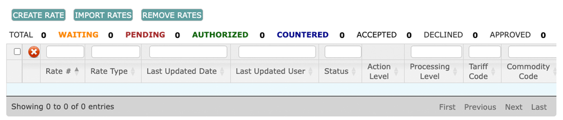 Rate Request Filters